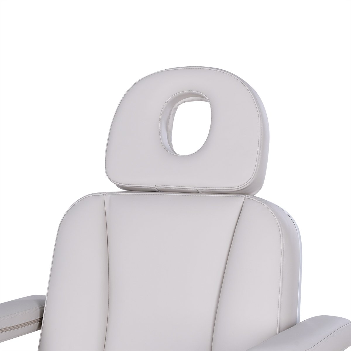 Три электромотора позволяют быстро и без усилий настроить высоту, угол наклона спинки и икроножной секции. Особое внимание уделено комфорту: инновационные подлокотники остаются горизонтальными в любом положении, мягкие элементы повторяют изгибы тела, а подголовник с анатомическим отверстием и подушкой делает процедуры максимально комфортными.