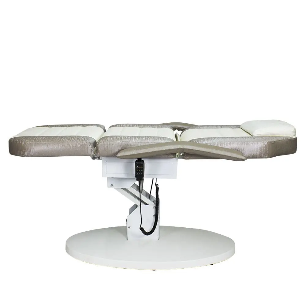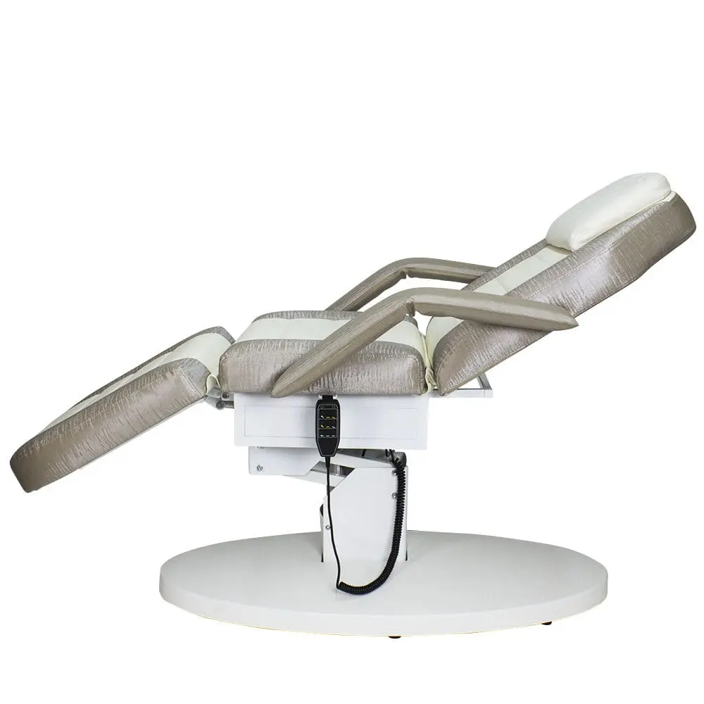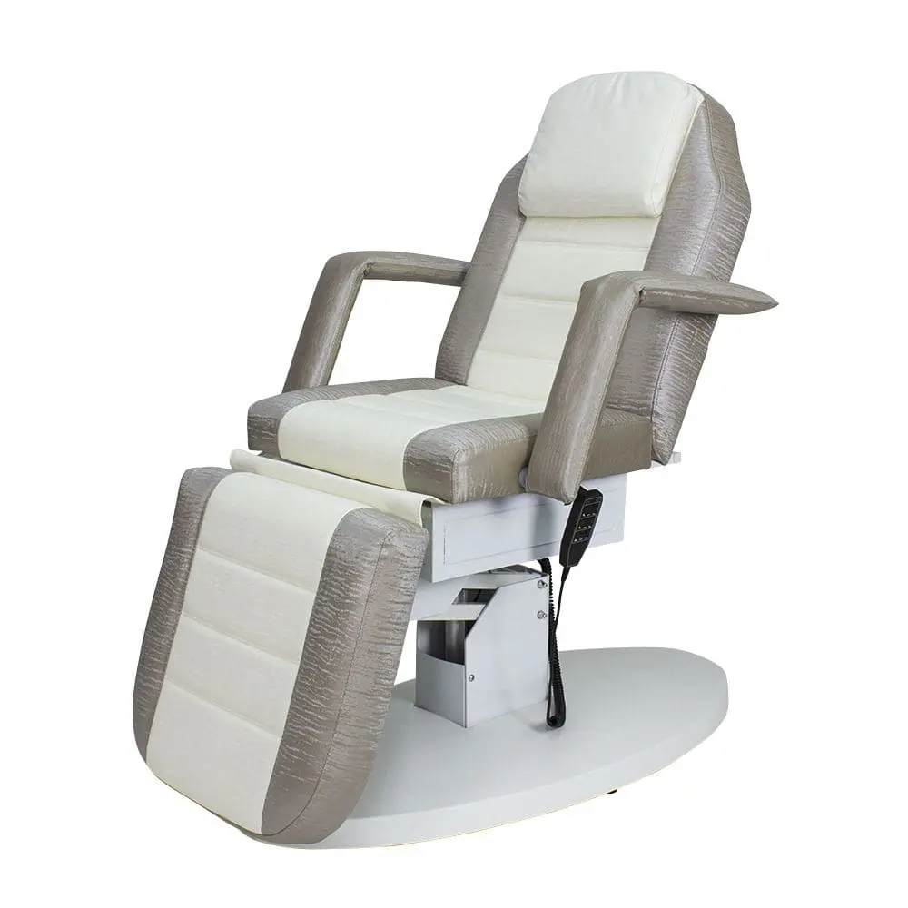 Кресло косметологическое Элегия-03 (Элегия-2) комплектуется тремя моторами электропривода, которые позволяют быстро и с комфортом для клиента менять положение мягких элементов. Пользуясь регулировками, мастер может трансформировать кресло в горизонтальное положение и использовать его в качестве косметологической или массажной кушетки. Подлокотники и подушка снимаются. Управление электроприводом осуществляется при помощи удобного пульта, который крепится к каркасу.