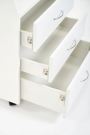 Многофункциональная передвижная тумба Бьюти комплектуется тремя удобными ящиками и открытой полкой, что позволит мастеру без труда убирать необходимые инструменты, в ящиках достаточно места, чтобы разложить приспособления мастера. Полка предназначена для установки аппаратов или принадлежностей первой необходимости. Перемещать косметологическое оборудование можно с помощью вращающихся колес.