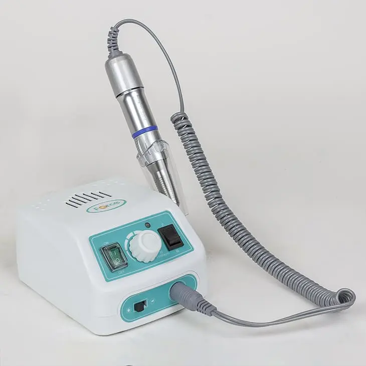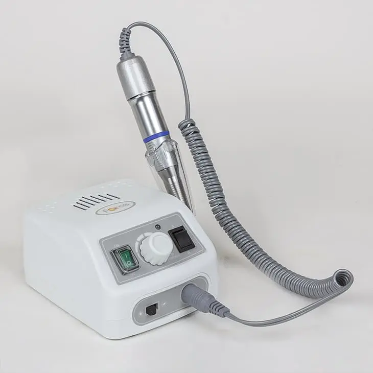 Аппарат мощностью в 65 Ватт достигает 35000 оборотов в минуту. Ручка не нагревается благодаря системе охлаждения, поэтому маникюрный аппарат можно использовать непрерывно в течение нескольких часов. Фреза плотно фиксируется в зажиме, который не допускает вибраций во время процедуры.