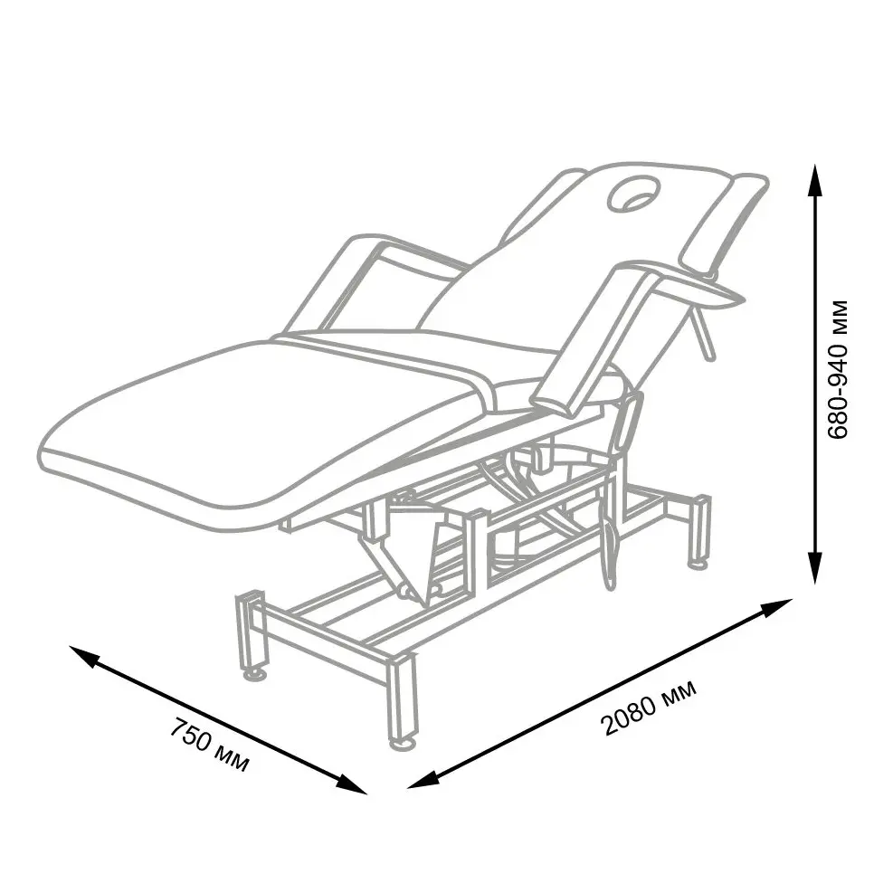 Кушетка массажная МД-849 (Элегия-3А) (электропривод, 3 мотора) – это профессиональное оборудование от компании МЭДИСОН. Она разработана для применения в массажном или косметологическом кабинете высокого уровня. Мягкая часть кушетки разделена на три сегмента: сиденье, спинка, элемент для ног. Это значительно повышает комфорт при использовании и обеспечивает необходимую функциональность во время работы. В спинке есть специальный вырез для лица. Для удобного расположения рук по время массажа предусмотрены навесные подлокотники, регулируемые по высоте.