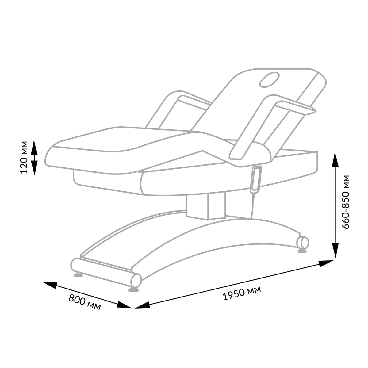 Комплектация: кушетка, подлокотники, съемная подушка, элементы каркаса и основания, электропривод с тремя электромоторами и дистанционным пультом управления.