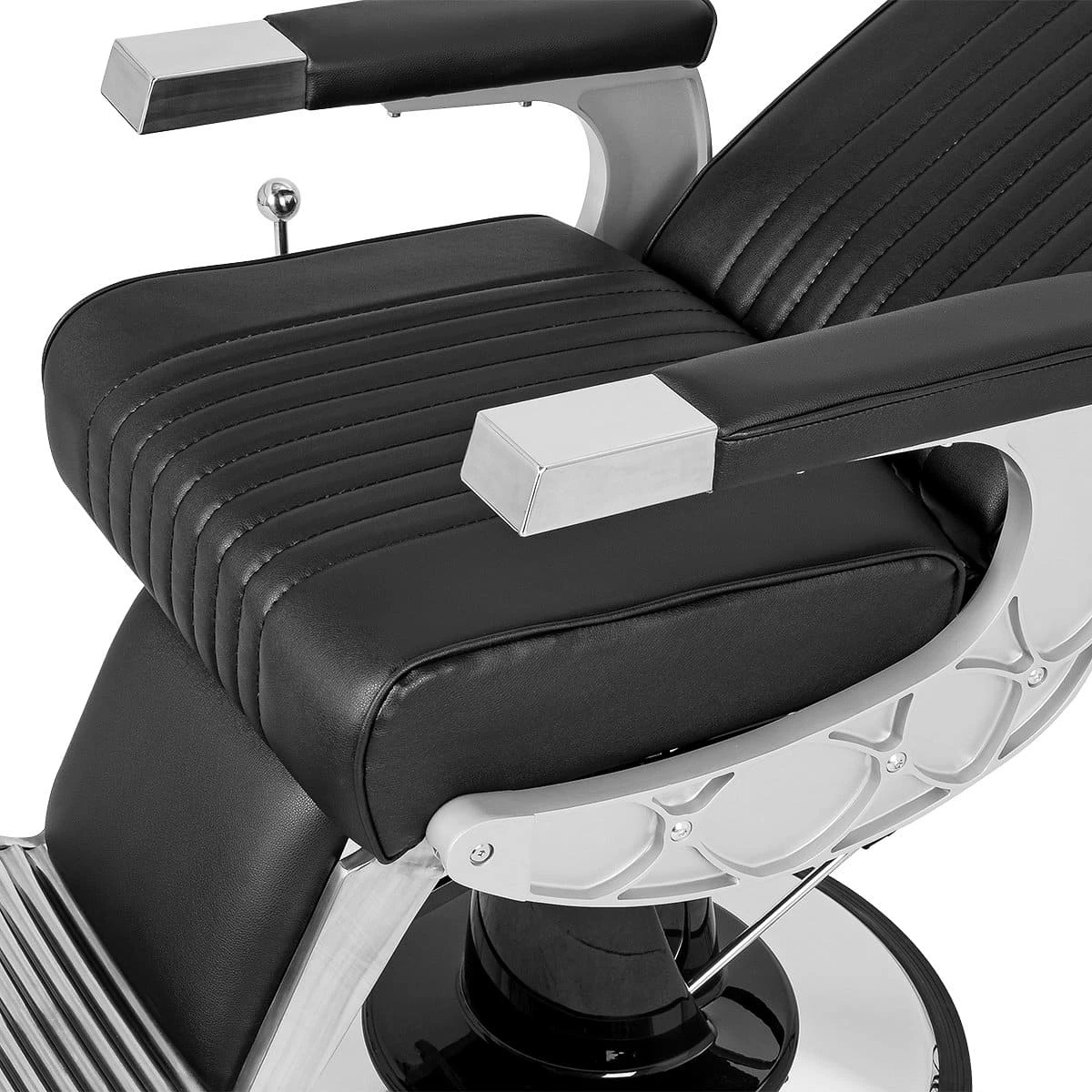 В комфортабельном кресле учтены все нюансы, которые помогут клиенту расслабиться, а мастеру комфортно работать. Благодаря удобному подголовнику клиент сможет откинуть голову во время бритья опасной бритвой. Для рук есть широкие подлокотники. Чтобы ноги клиента не находились в напряженном состоянии в кресле предусмотрена широкая подножка.