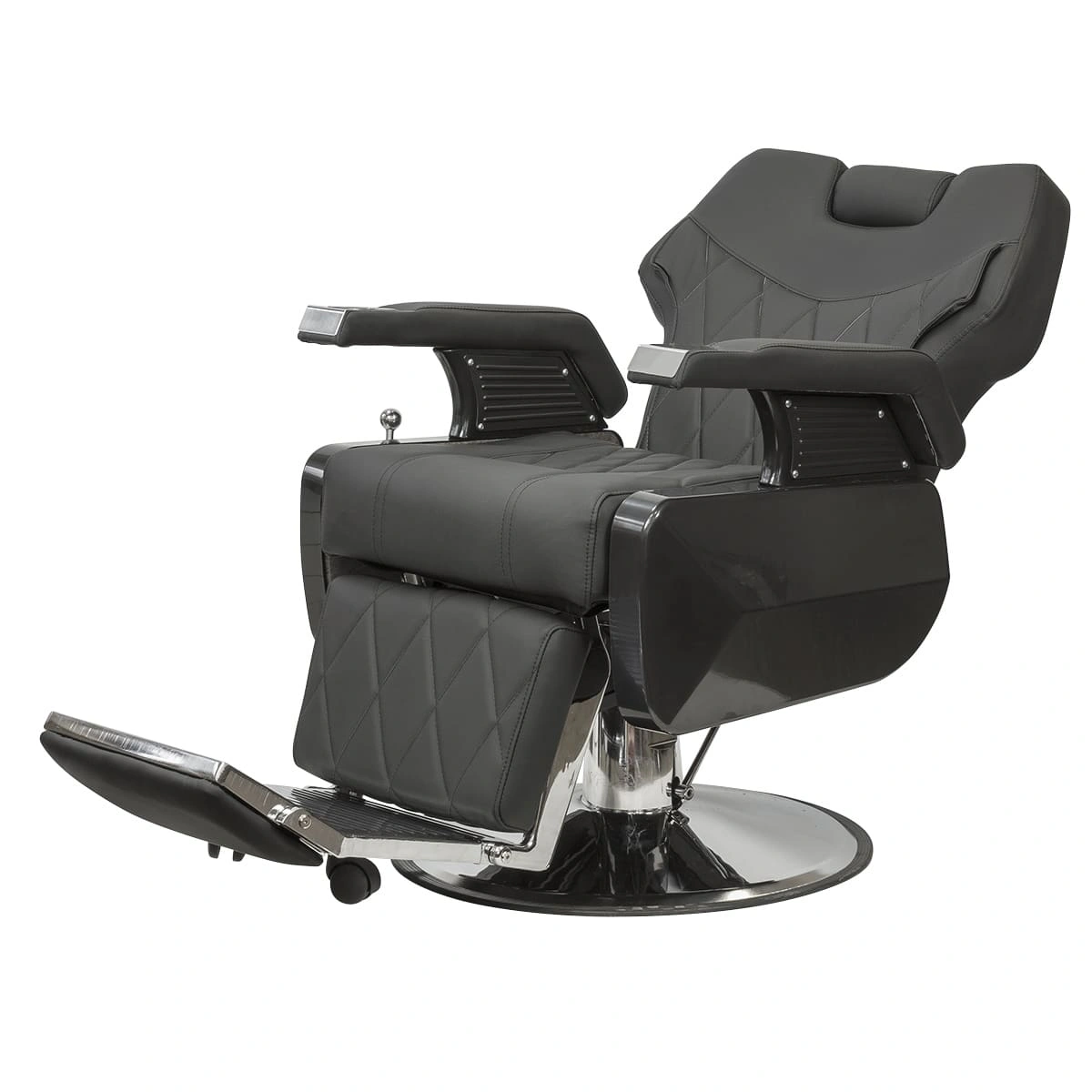 Широкое сидение с массивными подлокотниками позволит клиенту максимально расслабиться во время бритья и стрижки. Кресло дополнено большой подножкой с мягкой подушкой, что обеспечит комфорт ногам клиента.