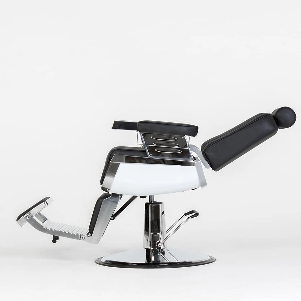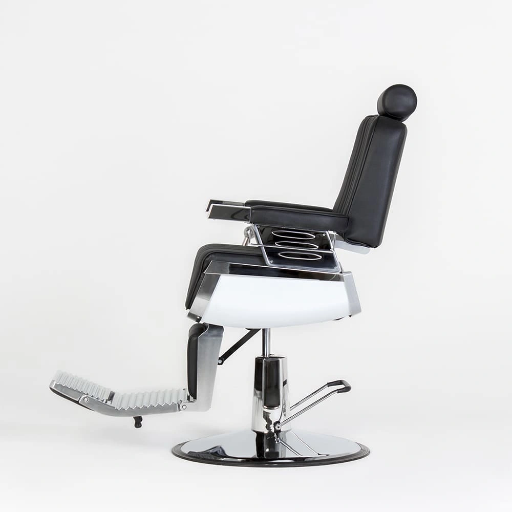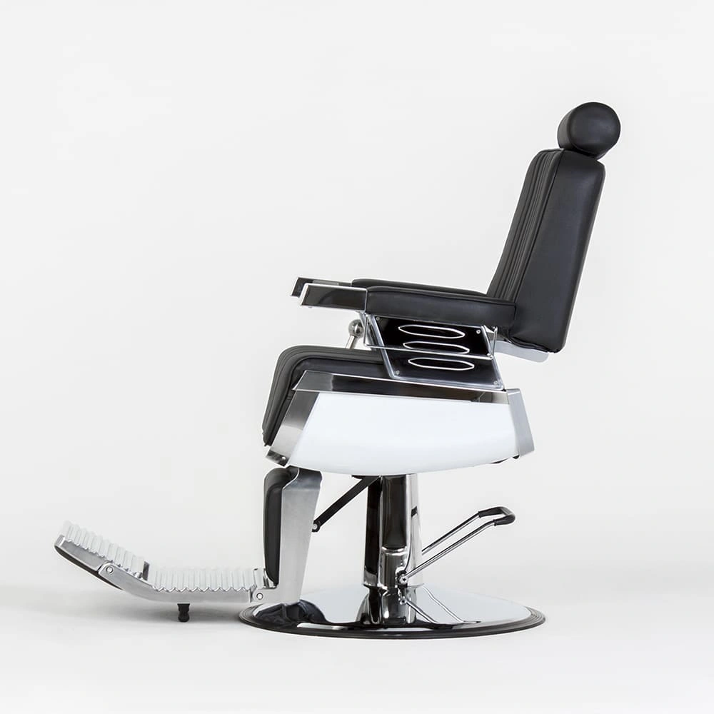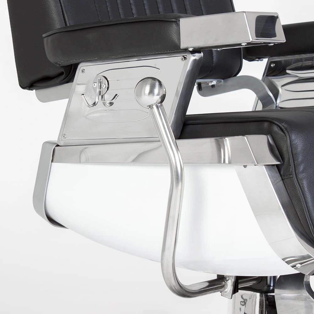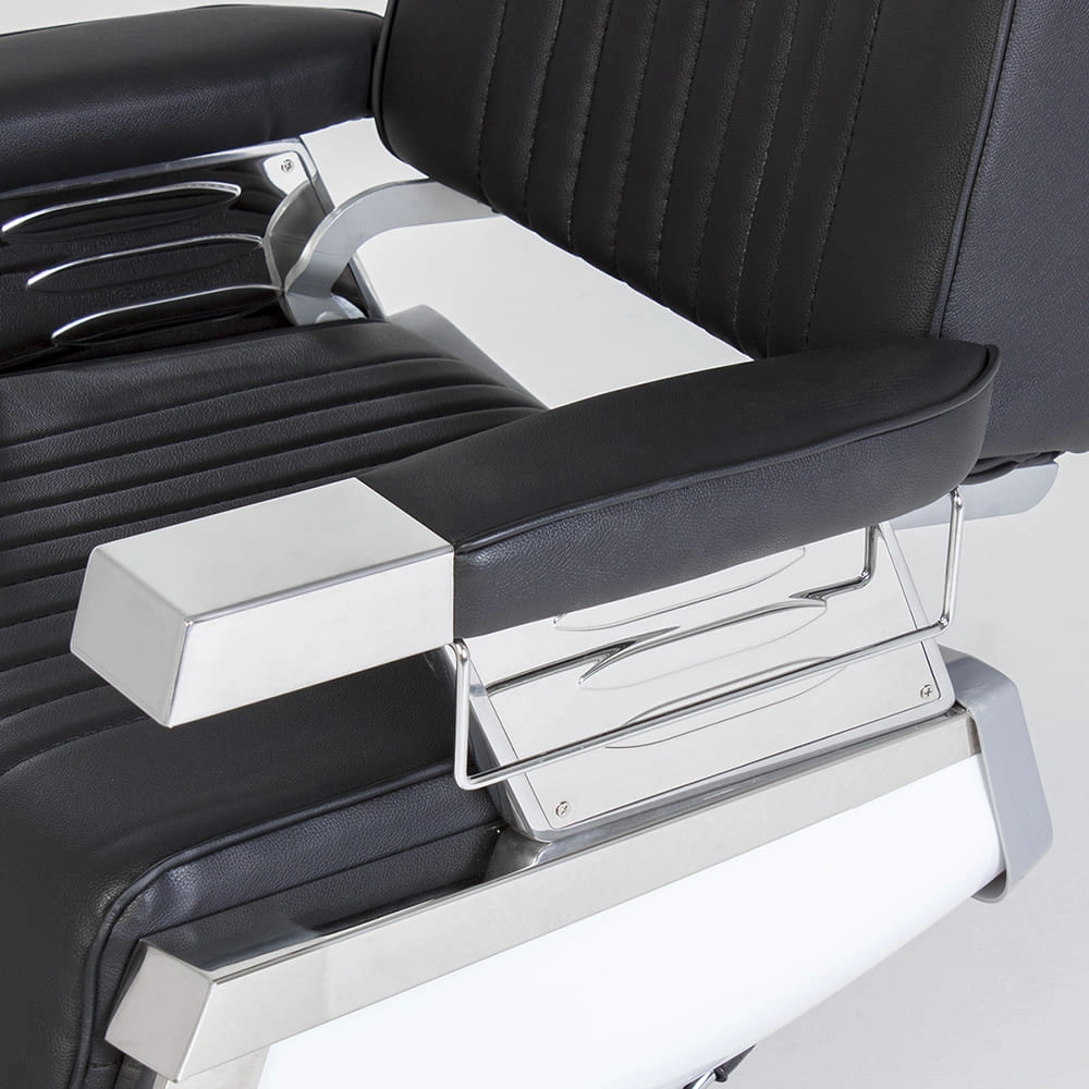 Профессиональное парикмахерское кресло мужское Барбер МД-600 в черном цветовом решении обеспечит комфорт во время стрижки или бритья, а также выгодно дополнит интерьер. Оно разработано с учетом требований профессионалов и специфики уходовых процедур в мужских парикмахерских залах и Барбершопах. В нашем интернет-магазине Вы можете купить кресло мужское Барбер МД-600 с черной обивкой из качественной мягкой матовой экокожи. Стильный дизайн модели подчеркивают хромированные элементы и декоративная прошивка на сиденье и спинке.
