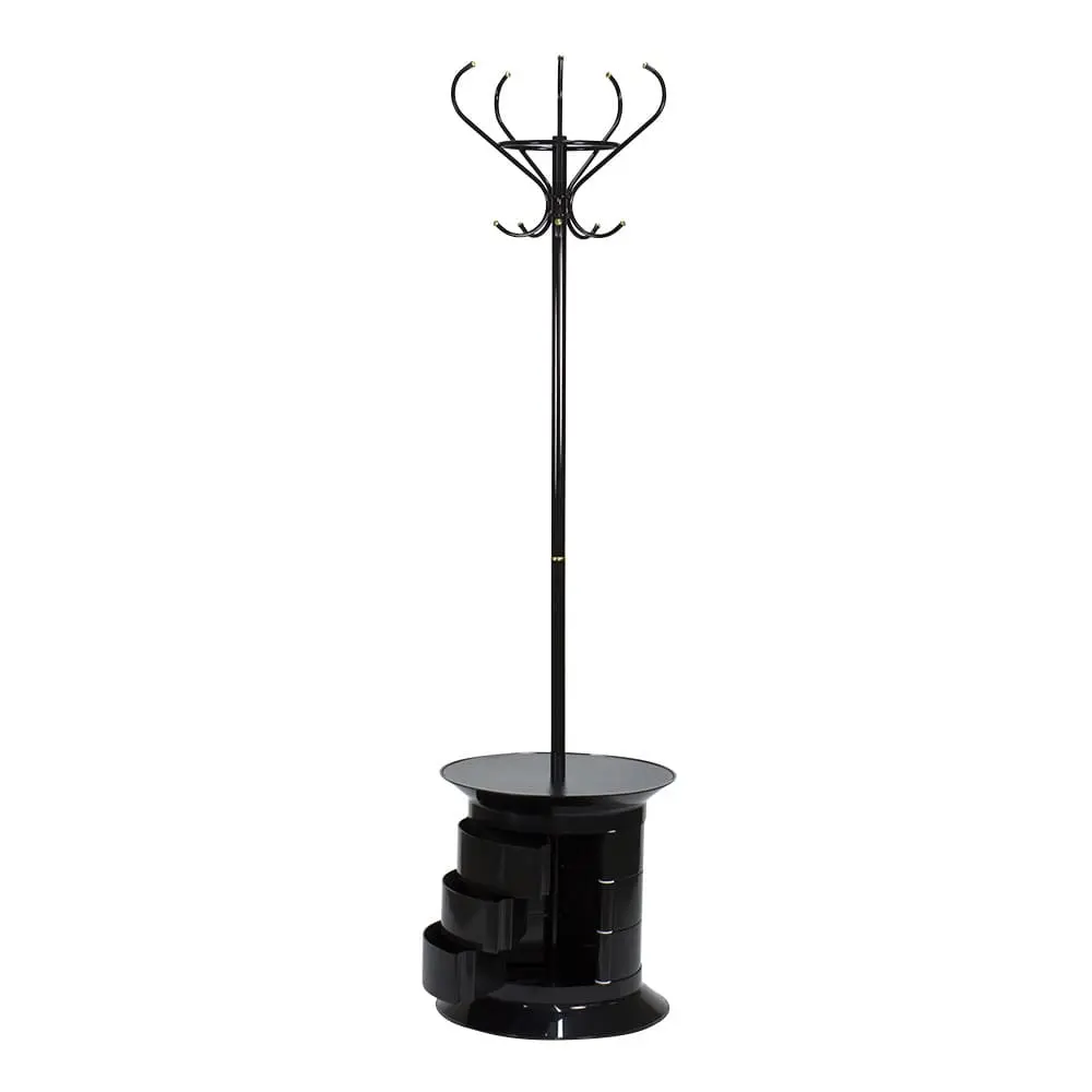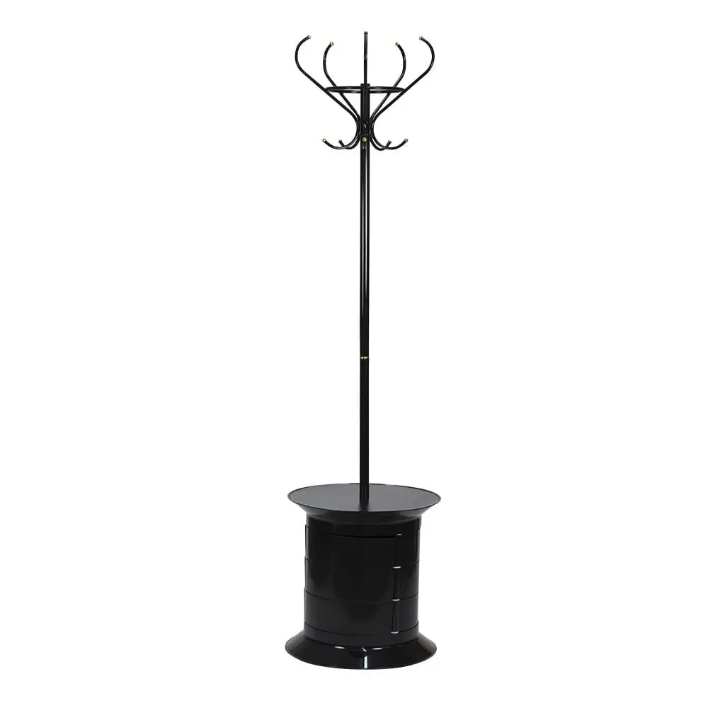 Вешалка для одежды GiroCo Raul black сохранит вещи посетителей в опрятном виде. Оборудование дополнено практичной тумбой с девятью ящиками для хранения мелких деталей одежды. Вешалку можно с легкостью передвигать с помощью встроенных колес. Черный цвет модели впишется практически в любой интерьер.