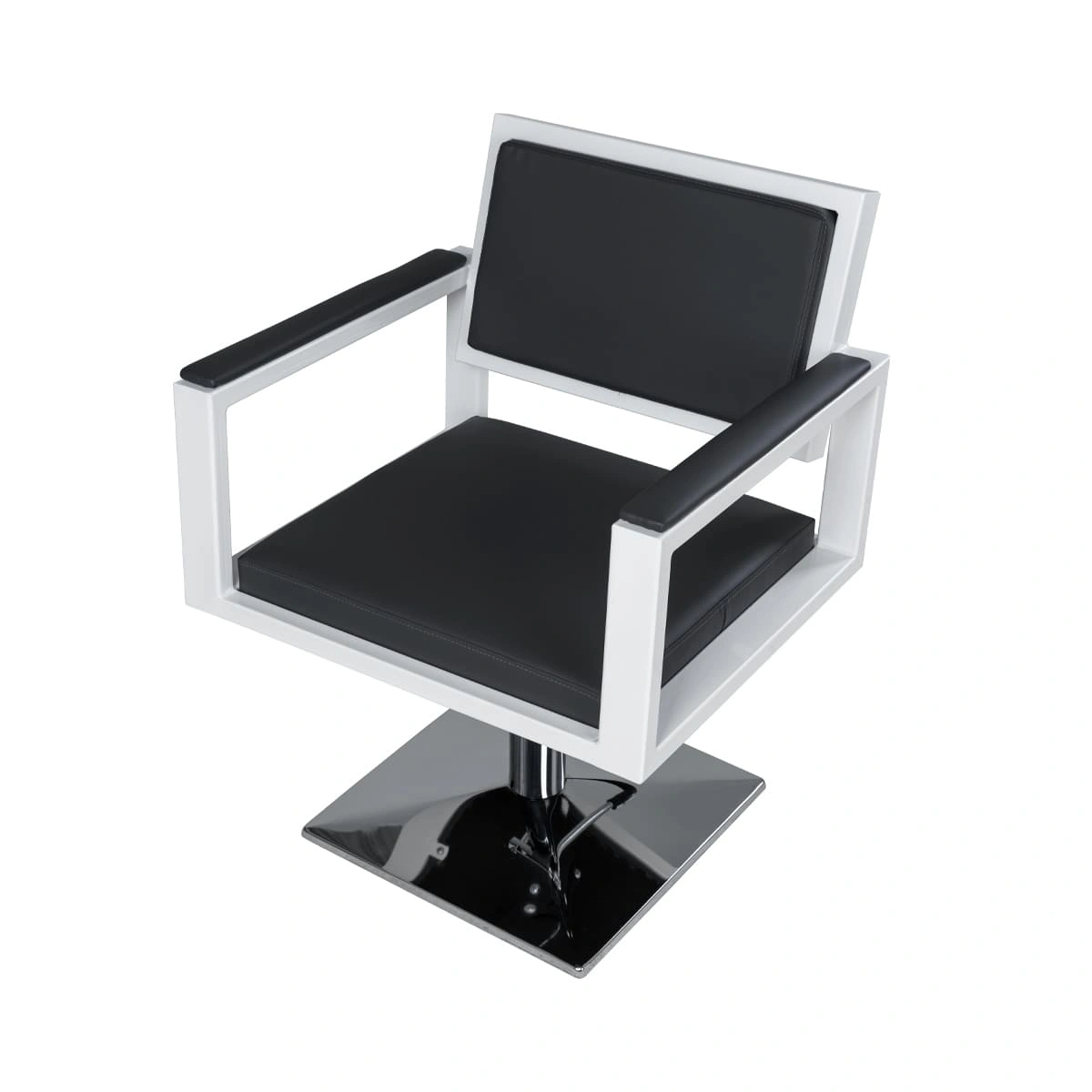 Каркас парикмахерского оборудования изготовлен из крепкого металла, что обеспечит долговечность и устойчивость кресла. Данная модель в базовой комплектации оснащена хромированным основанием в форме квадрата или диска на Ваш выбор.