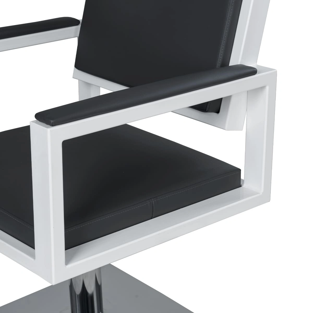 Удобное сиденье с мягкой спинкой в сочетании с подлокотниками обеспечат комфорт каждому клиенту. В качестве наполнителя применён плотный поролон, который не образует вмятин в течение длительного срока эксплуатации. Для обивки использована прочная экокожа, устойчивая к разрывам, растягиванию и протиранию. Уход за поверхностью необычайно прост потому, что материал не впитывает влагу и грязь. Пыль с такой мебели можно удалить сухой текстильной салфеткой, а пятна от косметических продуктов стираются специальными моющими составами для кожи без содержания хлора.