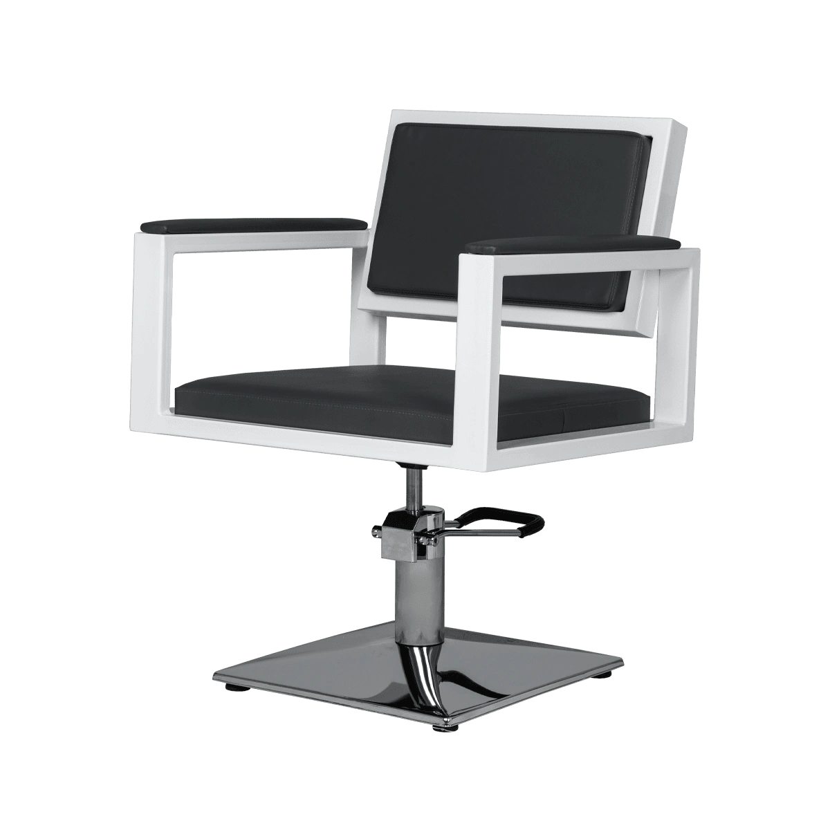 Для удобной работы мастера парикмахерское кресло оснащено мощным гидравлическим механизмом. С помощью этого подъёмника можно легко регулировать высоту сиденья, для большего комфорта клиента и мастера.