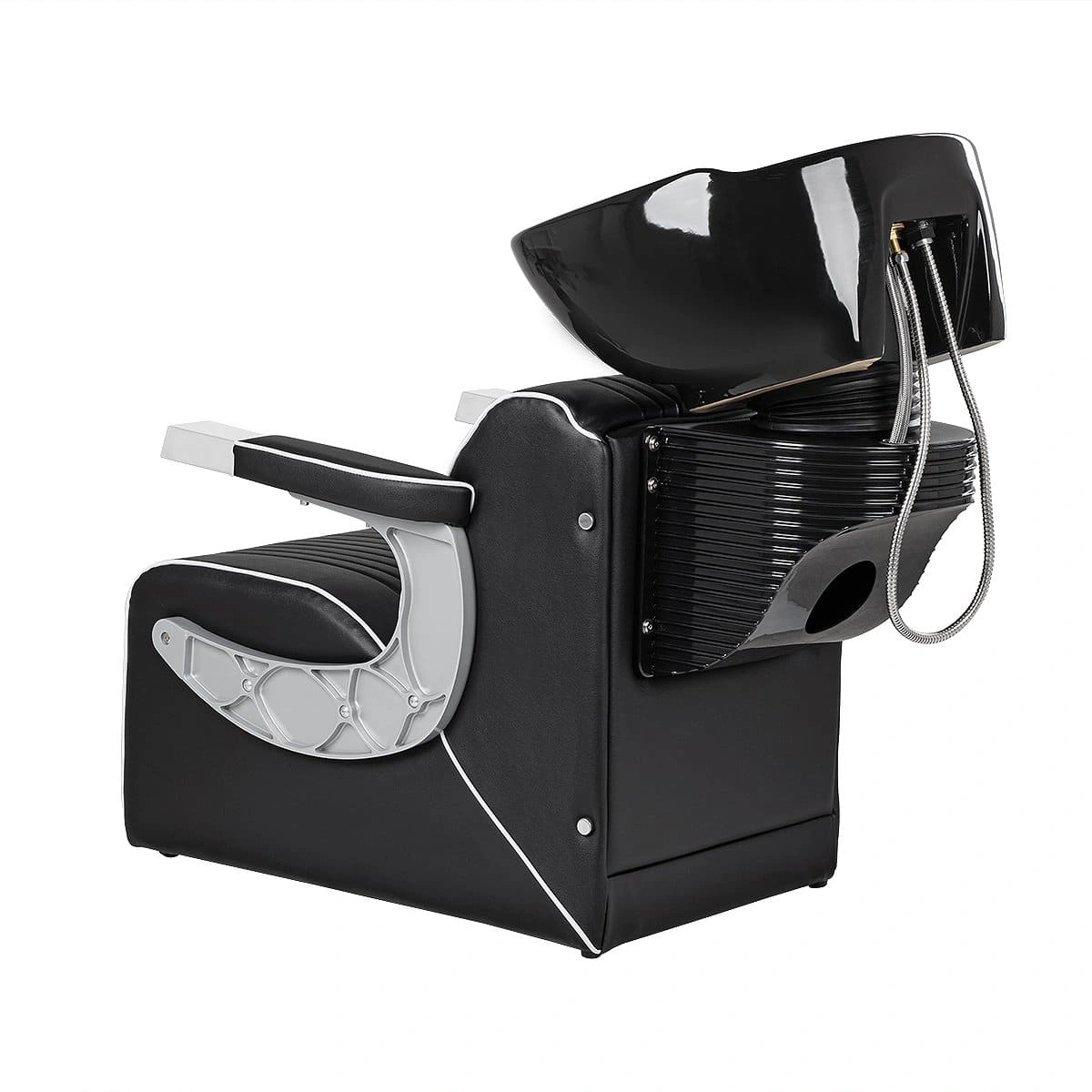 Комплектация: раковина, сантехнические комплектующие, узел наклона раковины, каркас мойки, кресло, хромированные подлокотники с накладками под цвет кресла.