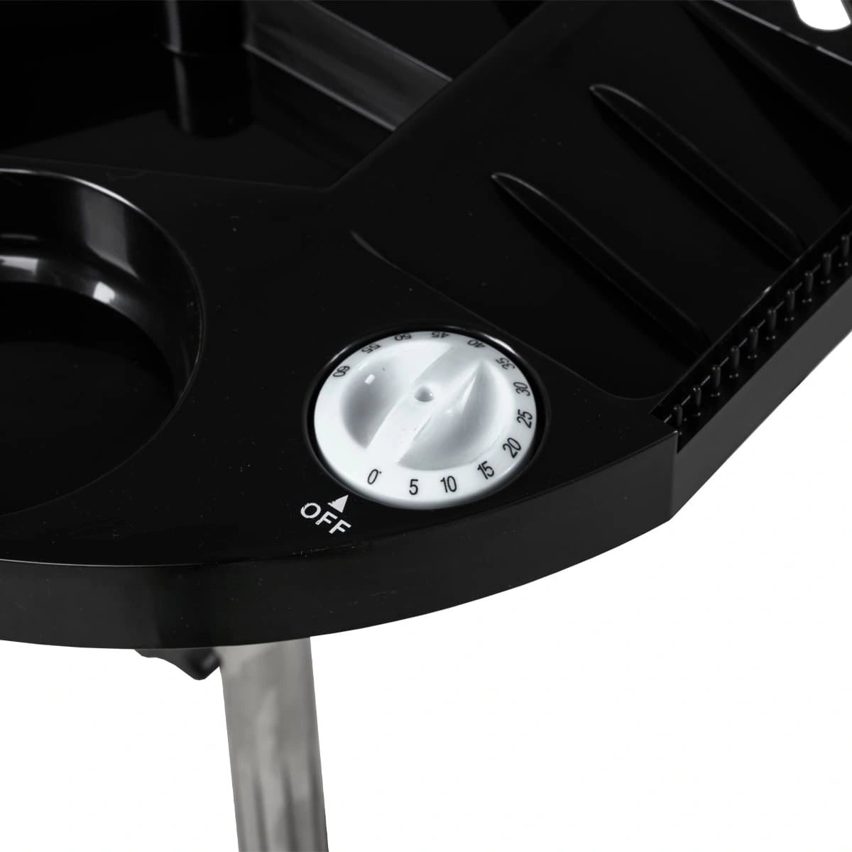 Комплектация: Пластиковая крышка (встроенный таймер от 0 до 60 мин.) на хромированной трубе. Основание - пластиковое пятилучье на колесах. Две чашечки для смешивания краски.
