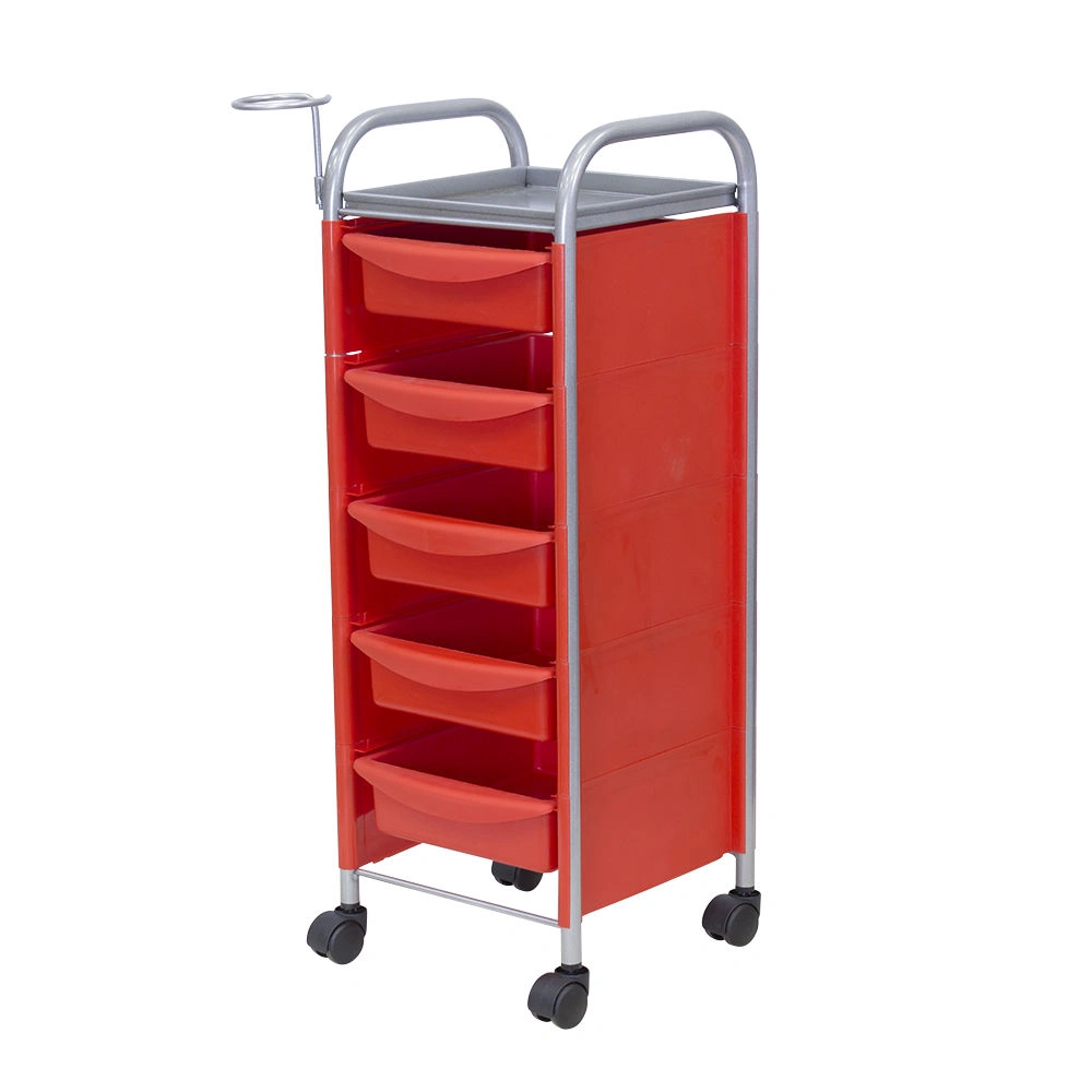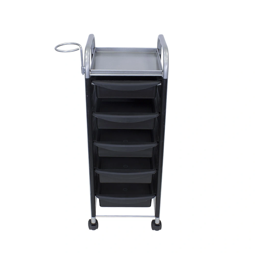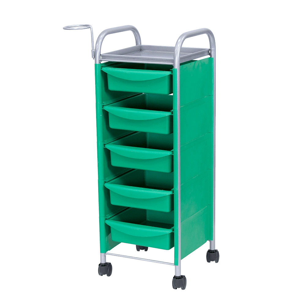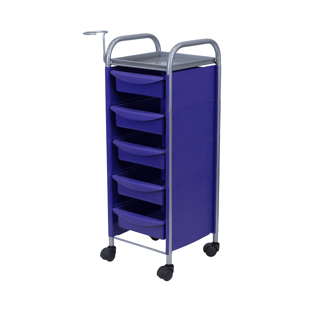Купить тележку парикмахерскую М-02 можно с пятью вместительными выдвижными ящиками из ударопрочного пластика. Также для инструментов и прочих рабочих принадлежностей предусмотрена функциональная полочка. Для дополнительного удобства во время работы к каркасу прикреплен съемный фенодержатель. В нашем магазине парикмахерская тележка М-02 представлена в черном, сером, красном и белом цвете.