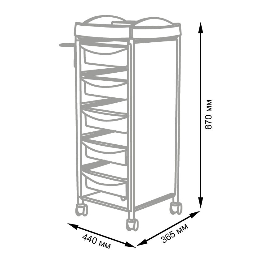 Комплектация: каркас на маневренных колесах, пластиковые боковые панели, верхняя крышка, выдвижные ящички (5 шт.), фенодержатель.