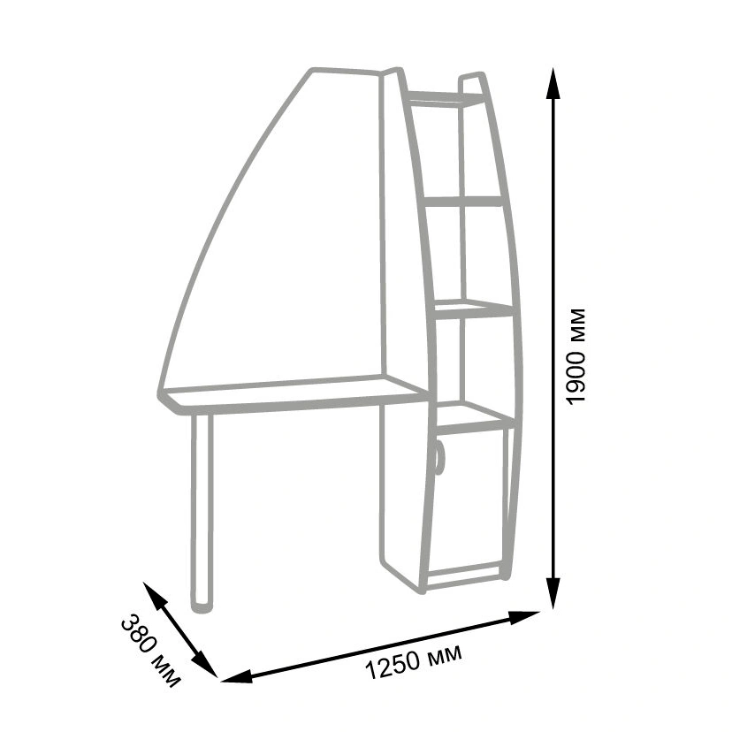 Комплектация: зеркало, столешница, хромированная ножка, шкафчик с полками и тумбой.