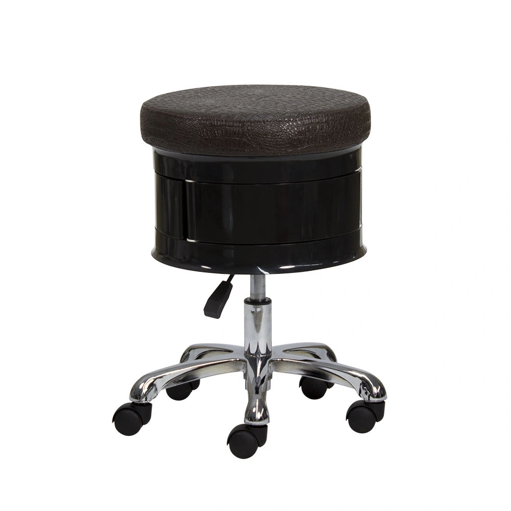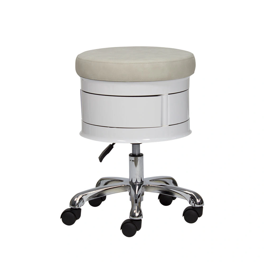 Для комфортной посадки предусмотрено мягкое сидение. В нижней части есть практичные ящики, чтобы держать необходимый инструмент во время проведения процедур. Для удобного перемещения стул укомплектован поворотными колесиками. Теперь не придется лишний раз вставать и передвигать мебель вручную. С помощью пневматического механизма регулируется высота стула, что позволит подобрать удобное положение.