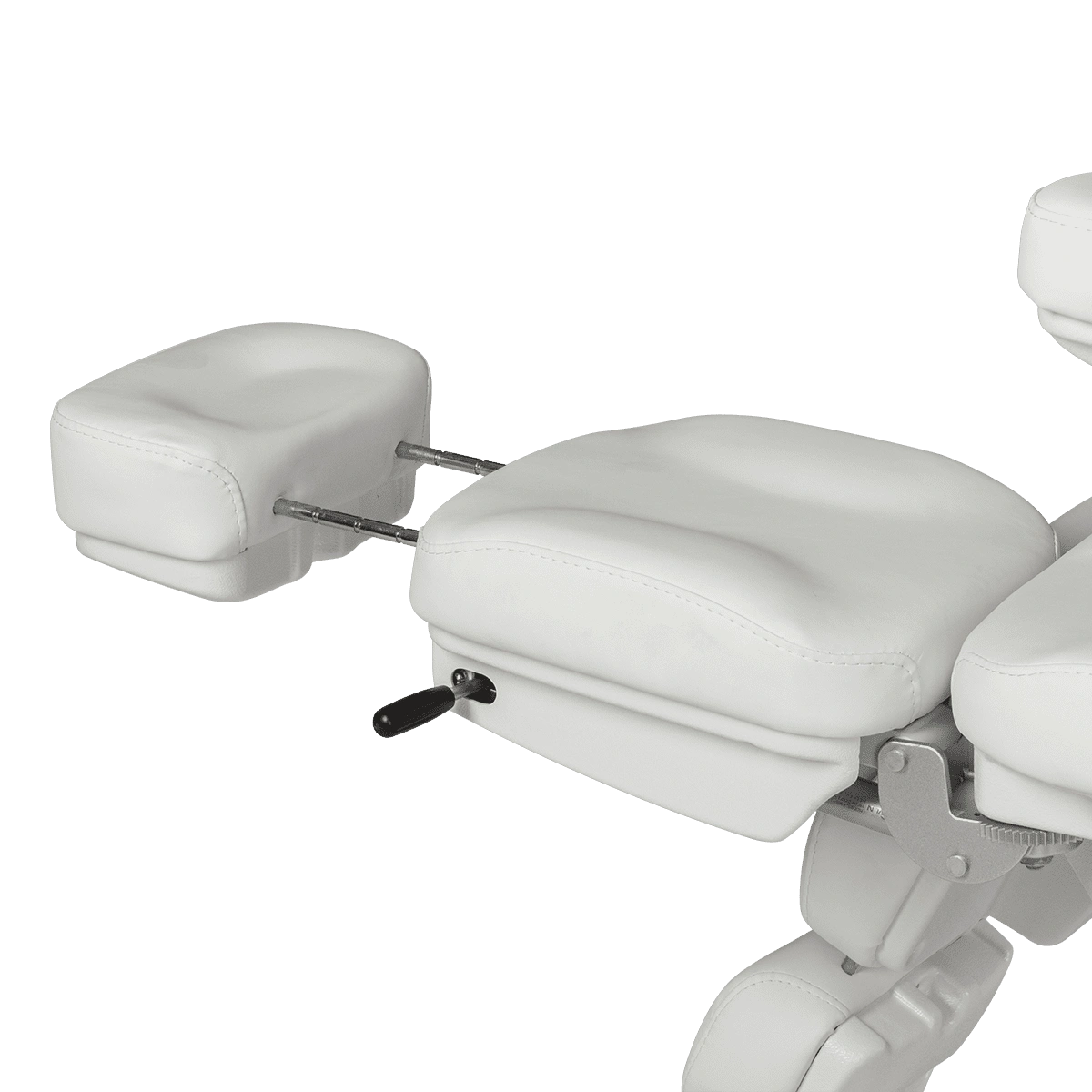 Комплектация: каркас, основание на подпятниках, сиденье, спинка, подголовник с вырезом для лица и съемной подушкой, мягкие элементы под ноги с выдвижными подпятниками, съемные подлокотники, электропривод (3 мотора) с пультом управления.