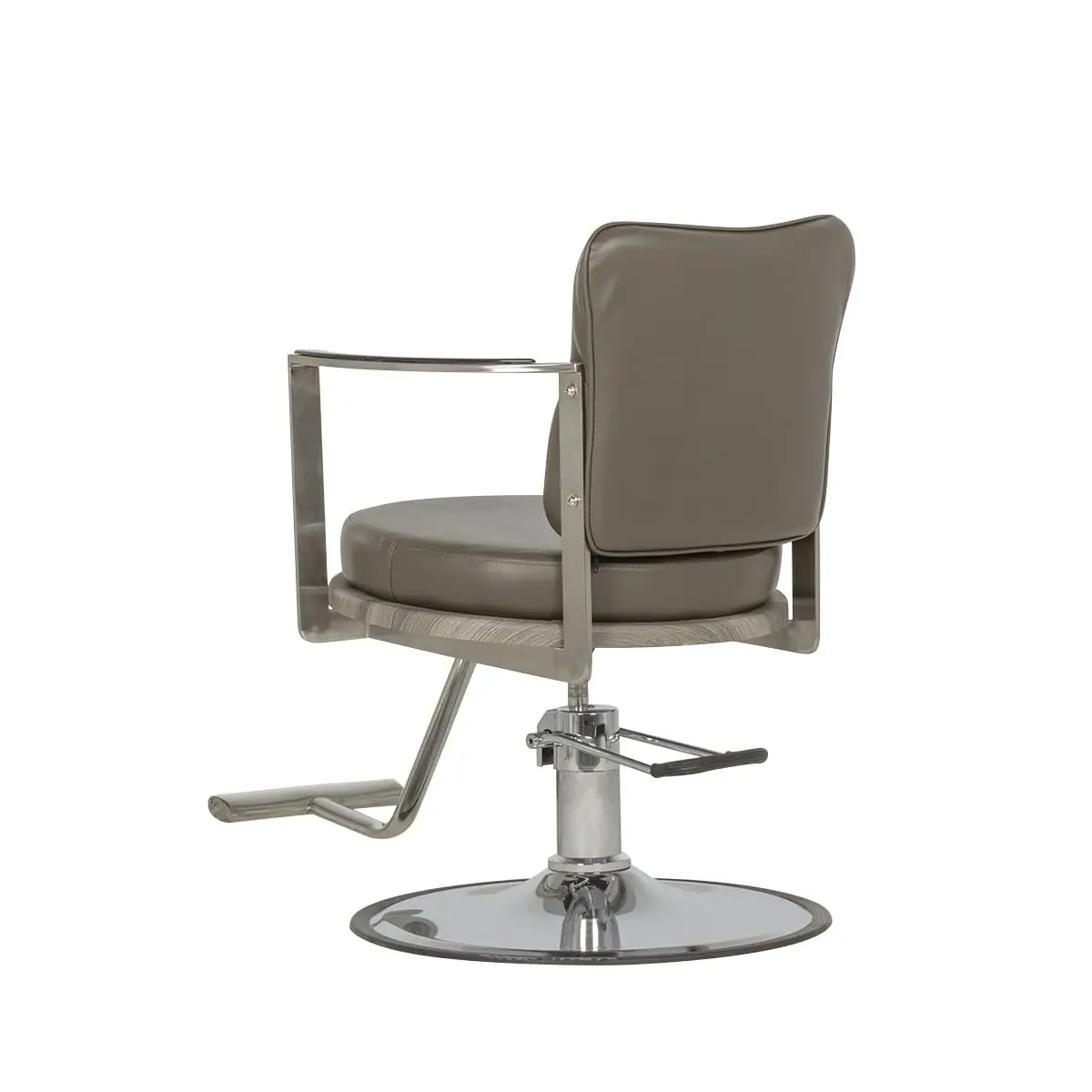 Кресло обладает эргономичной спинкой и идеальной глубиной сидения, подходящей для удобной посадки. Практичная подножка не допустит усталости ног клиентов. Парикмахерское кресло оснащено надежным гидравлическим механизмом. Такой подъемник позволяет поднимать и опускать кресло вместе с клиентом.
