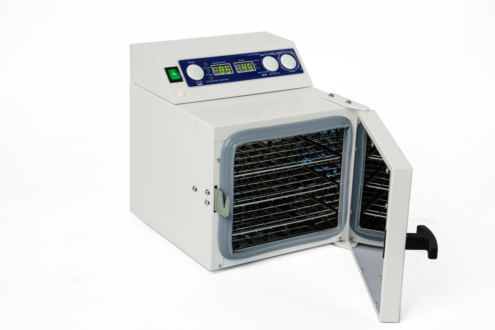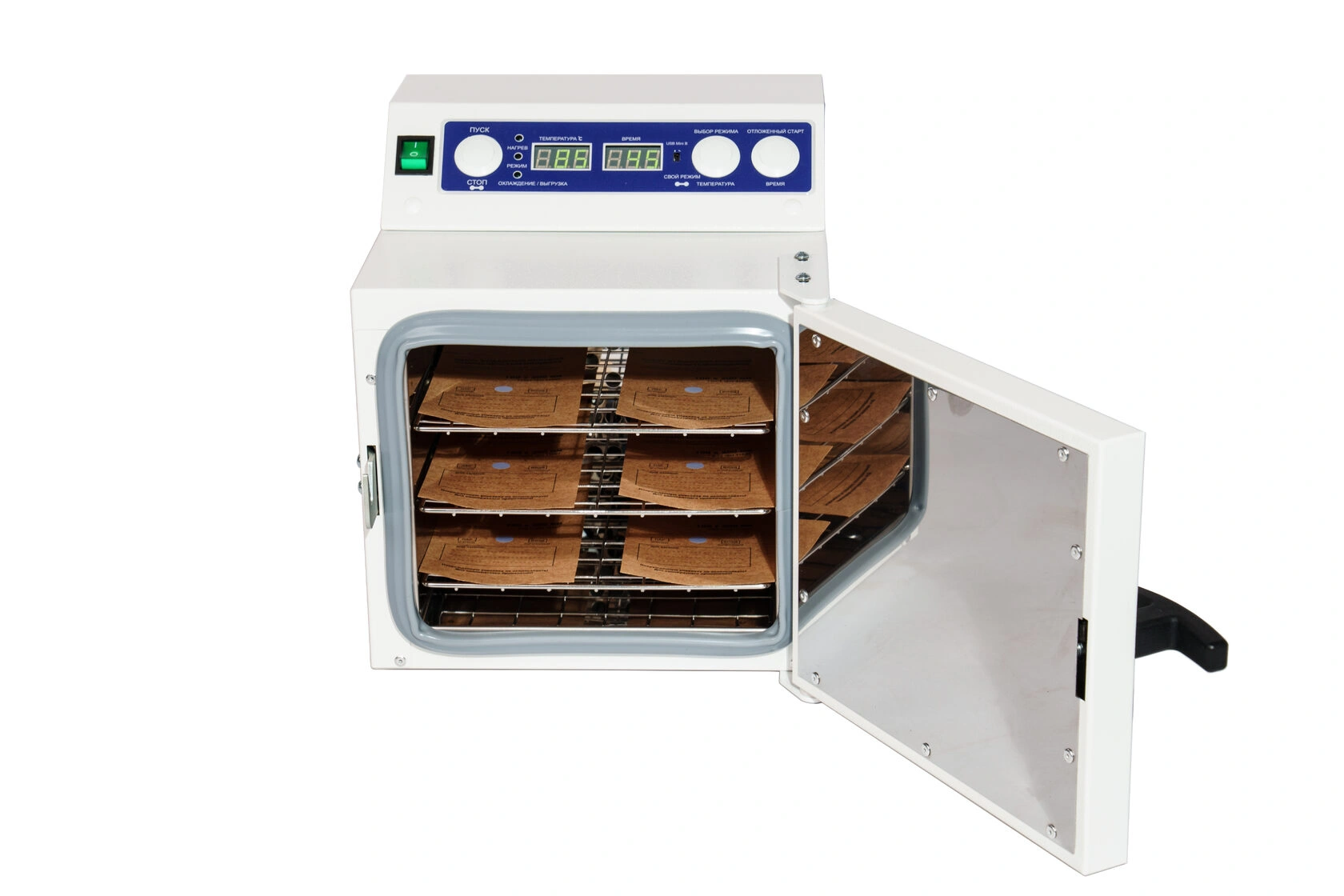 Стерилизатор "Ферропласт" при загруженной стерилизационной камере должен обеспечивать автоматическую поддержку температурных режимов в диапазоне от +85°С до +180°С и времени стерилизационной и дезинфекционной выдержки, а также пользовательского программируемого режима +50°С до +200°С, интервалом от 1 до 999 минут.